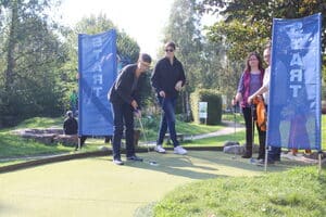 Zum Auftakt spielten wir gemeinsam Minigolf. Dabei ging es weniger um Punkte als um den Spass – und den hatten wir reichlich! Es wurde viel gelacht, gefrotzelt und angefeuert, und so war das Eis schnell gebrochen.